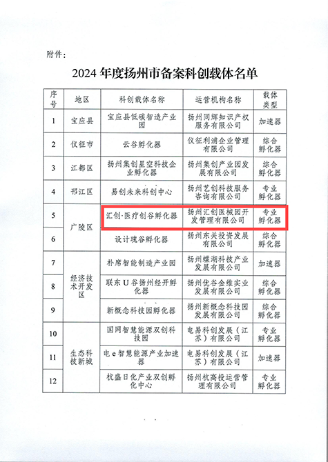 集團(tuán)旗下匯創(chuàng)·醫(yī)療創(chuàng)谷產(chǎn)業(yè)園成功獲批揚(yáng)州市科技企業(yè)孵化器 |
