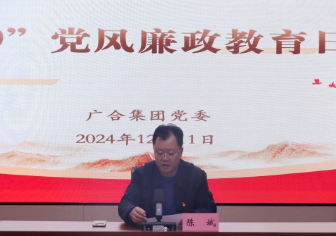 12月11日下午,廣合集團開展“12·9”黨風廉政教育日活動,進一步加強新時代廉潔文化建設,強化黨員、干部廉潔自律意識,營造和弘揚崇尚廉潔、抵制腐敗的良好風尚。集團黨委書記、董事長陳斌主持活動。集團全體人員參加活動。